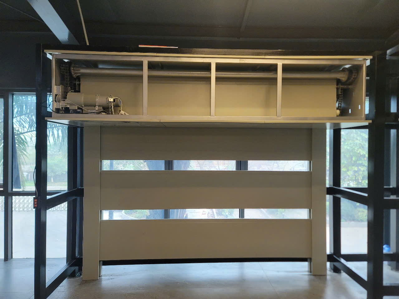 Thiết kế dạng cuốn gọn gàng, không chiếm nhiều diện tích như tường ngăn cố định. Khi không sử dụng có thể cuốn gọn lên trần, giữ thẩm mỹ cho công trình.